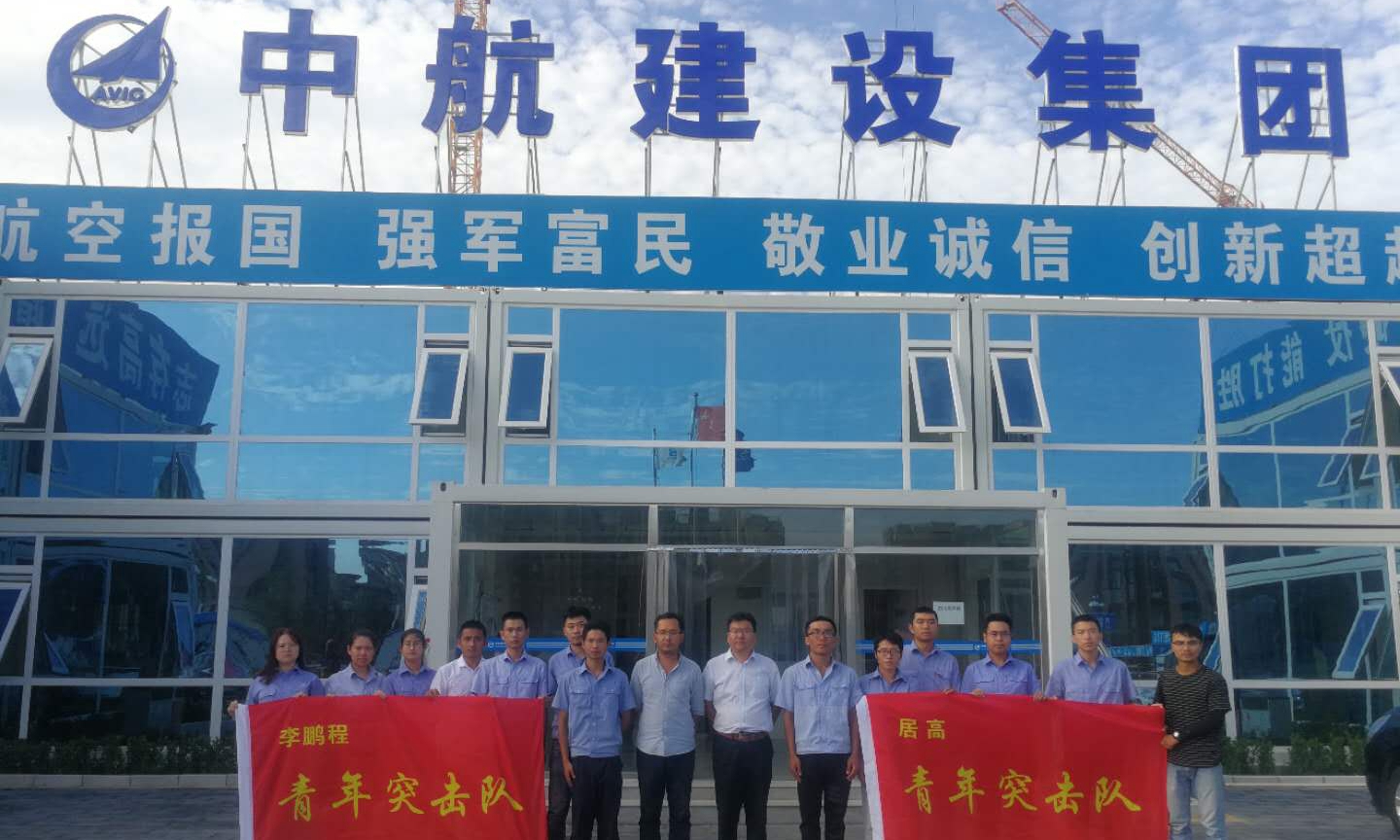 授旗后,所有突击队员在项目办公楼前合影留念,标志着大兴保障房项目青年突击队的正式成立,吹响了项目部青年职工奋勇向前、争当先锋的号角。