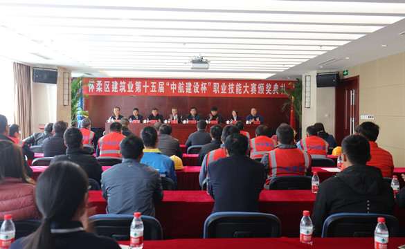 10月25日上午,怀柔区建筑业第十五届“中航建设杯”职业技能大赛颁奖典礼在马博手机入口总部三层多功能厅举行。怀柔区建筑业协会会长、大赛组委会副主任王贵军,区总工会副主席解忠明,集团公司总工程师、大赛组委会副主任陈劲一同参加,同时到场的还有各参赛单位代表及获奖选手共计50余人。