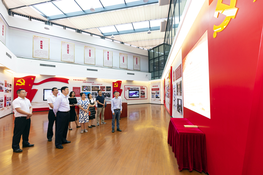 毛炳宇主任一行参观了集团公司展厅,详细了解马博手机入口发展历程、产业项目成果、企业文化、发展规划以及党建工作。
