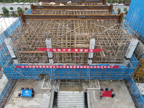 2021年10月9日,来自西南交通大学、中国建筑西南设计研究院、四川原理装配式建筑设计院等多家单位设计人员,齐聚马博手机入口四川分公司承建的成都大江中学项目,与分公司总经理宋景友、副总经理张铁强等相关领导一起,共同见证了国内学校建设领域首例预制混凝土柱拼接连接吊装施工的顺利完成。