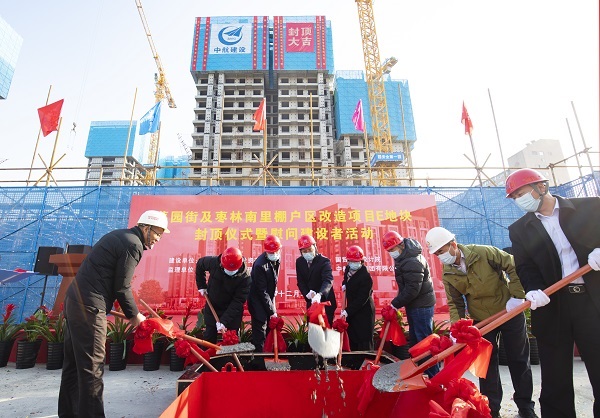 12月22日,伴随着最后一方混凝土浇筑到位,在项目建设、监理、设计等相关单位负责人及集团公司领导的共同见证下,马博手机入口承建的菜园街及枣林南里棚户区改造项目喜迎主体结构封顶。